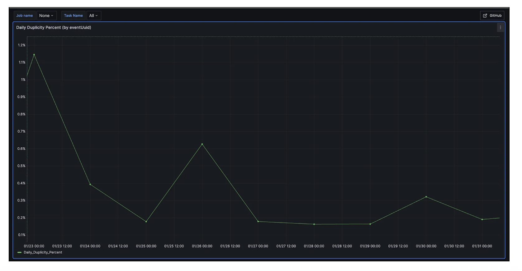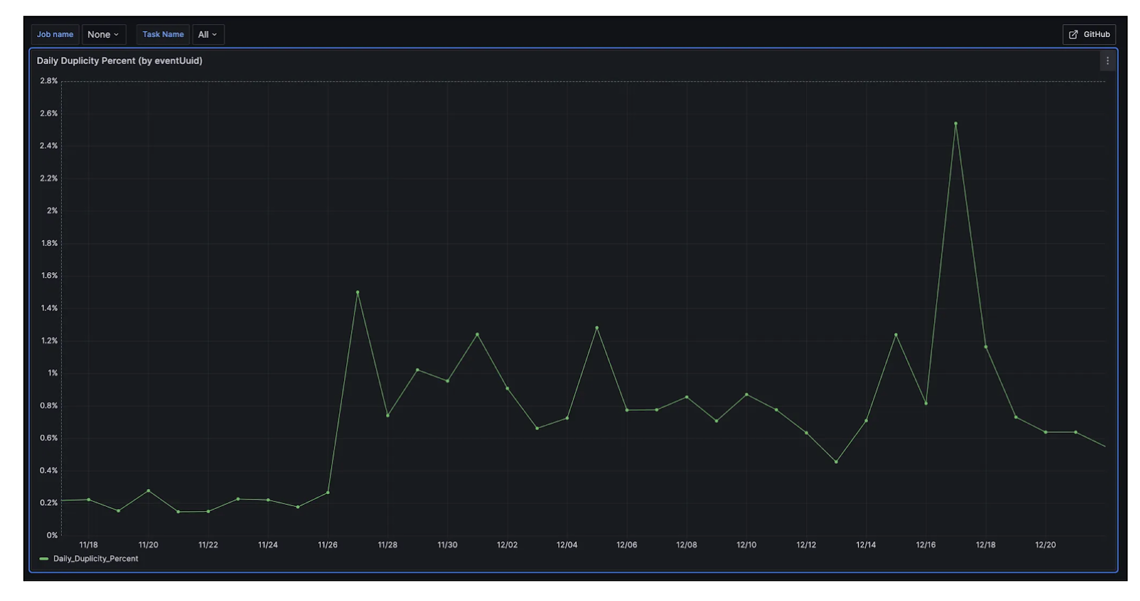 Upon enabling autoscaling for the Flink job, around 1-2.5% daily duplication increase in View Events Streams.