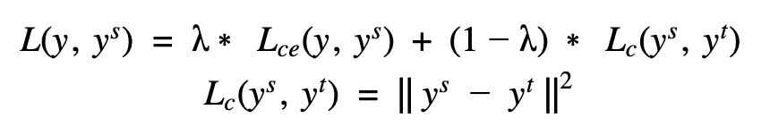 The overall loss function is shown in Equation. 1, where y is the ground truth label and yˢ, yᵗ are the predictions from the student and the teacher models respectively. The parameter λ provides a control over the tradeoff between the supervised loss and consistency losses.