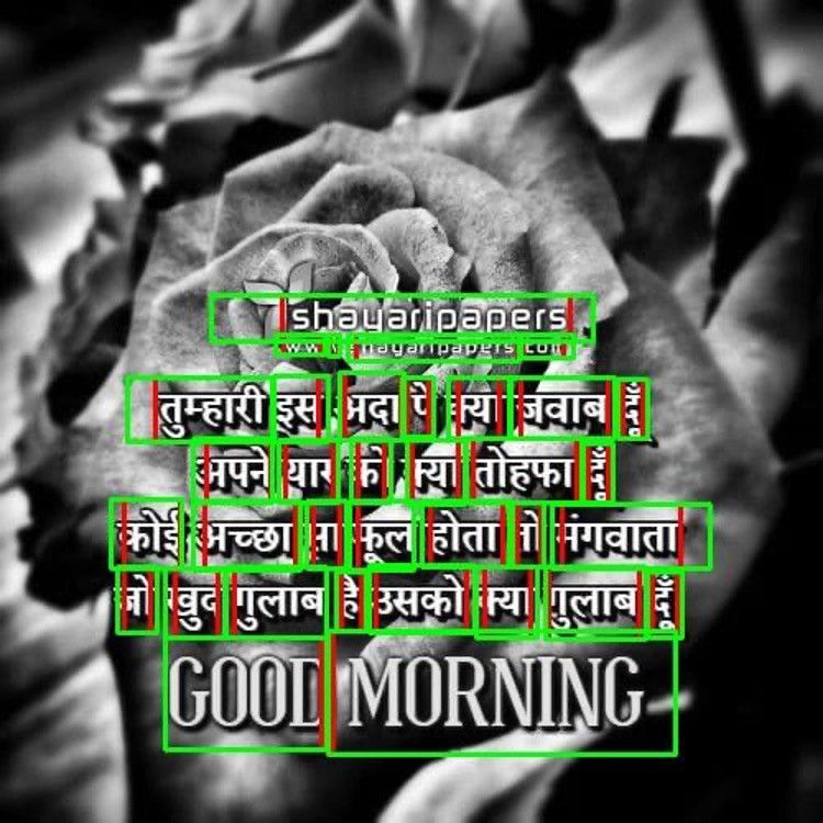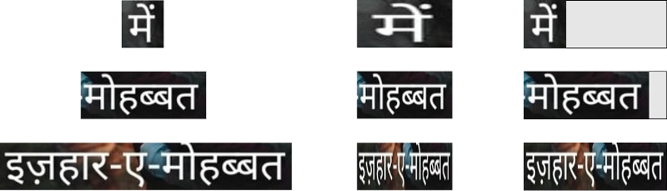 An example of our approach and its results can be seen in Fig 9. We observed for longer words like इज़हार-ए-मोहब्बत in our case, one-size-fits-all methods lead to wrong recognition in most of the cases. Finally, we crop these boxes from the image and send them to further steps in the pipeline.