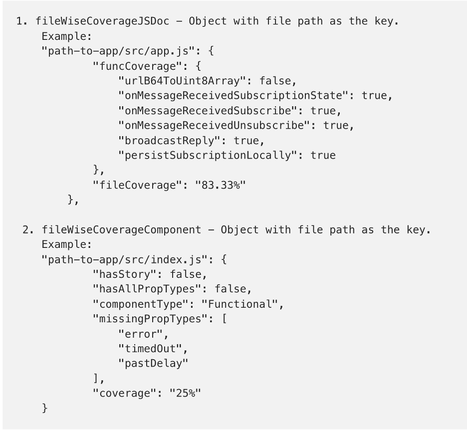 Detailed Results can be found in the file called docCoverageReport.json in the root of the project. It provides file-wise coverage as well.