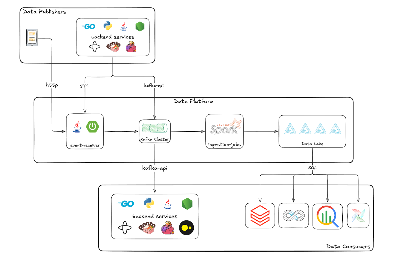 CDP is responsible for enabling various ways of publishing and consuming data. For publishing events, we support http, grpc and kafka protocols. For consuming data, we support kafka and sql protocols.