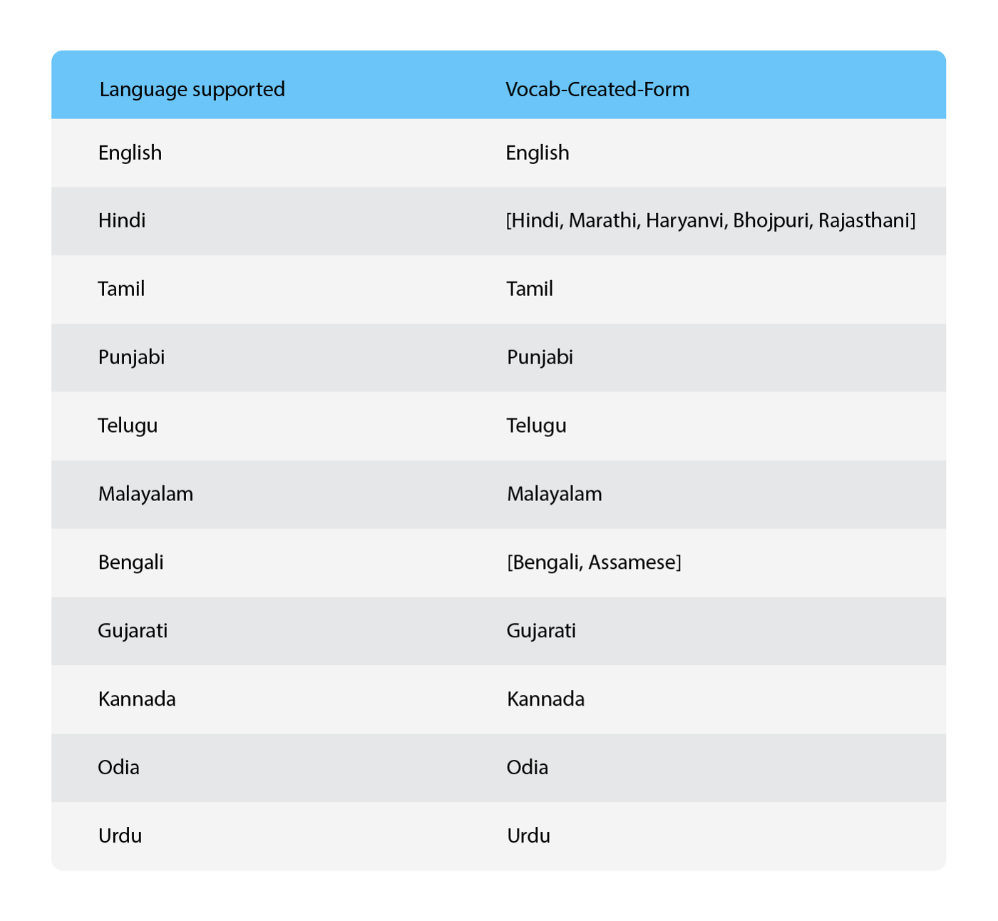 1. Enabling support for languages that share the same script. Languages like Hindi, Marathi, Bhojpuri etc share the same script, but have vastly different word vocabularies as shown in Fig 4.