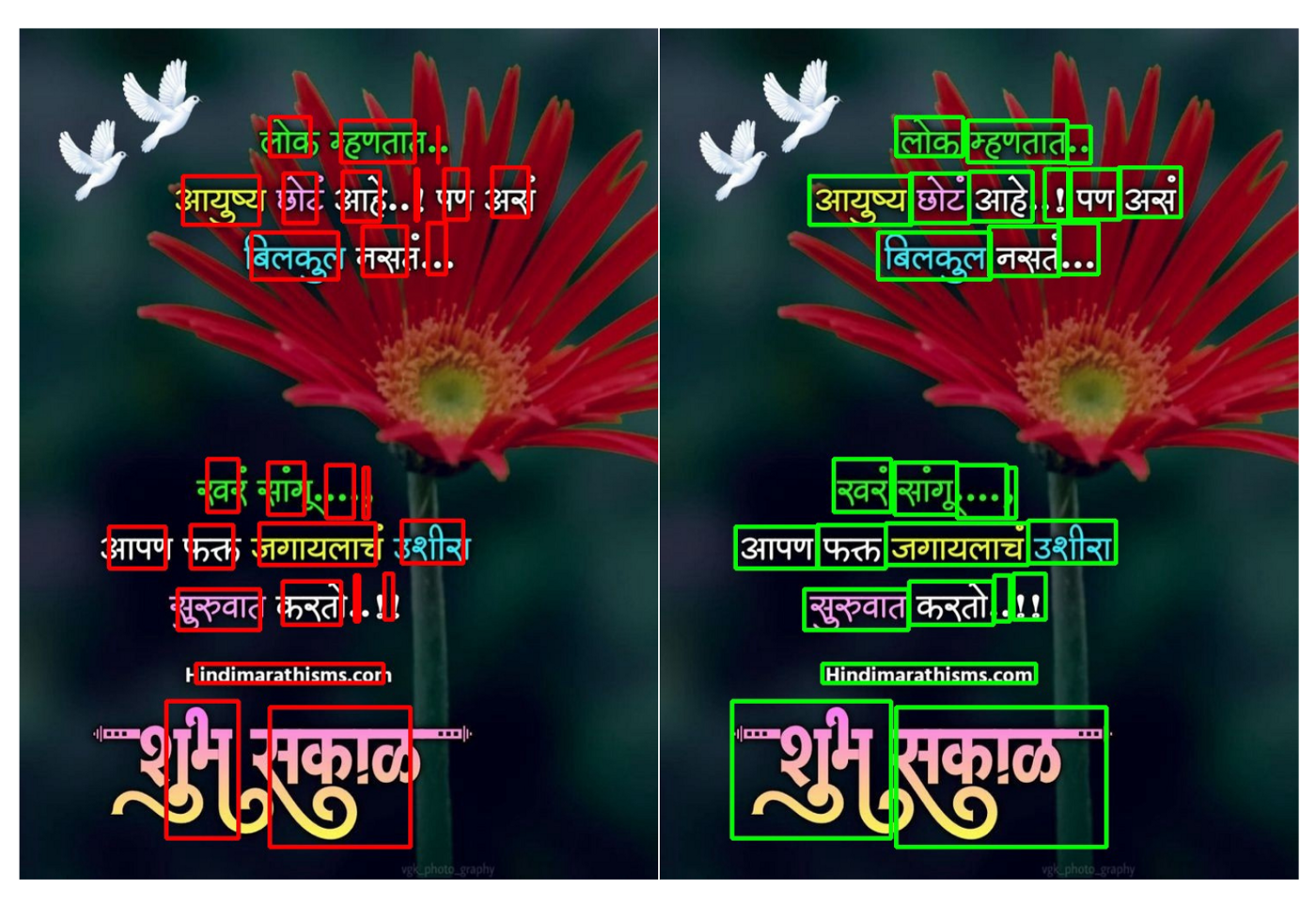 As shown in Fig 1, the bounding boxes generated by the text-detection algorithm are imperfect and often short on the horizontal axis, leading to imperfections in text recognition down the line in further steps. This is no fault of the algorithm but the ground truth itself.